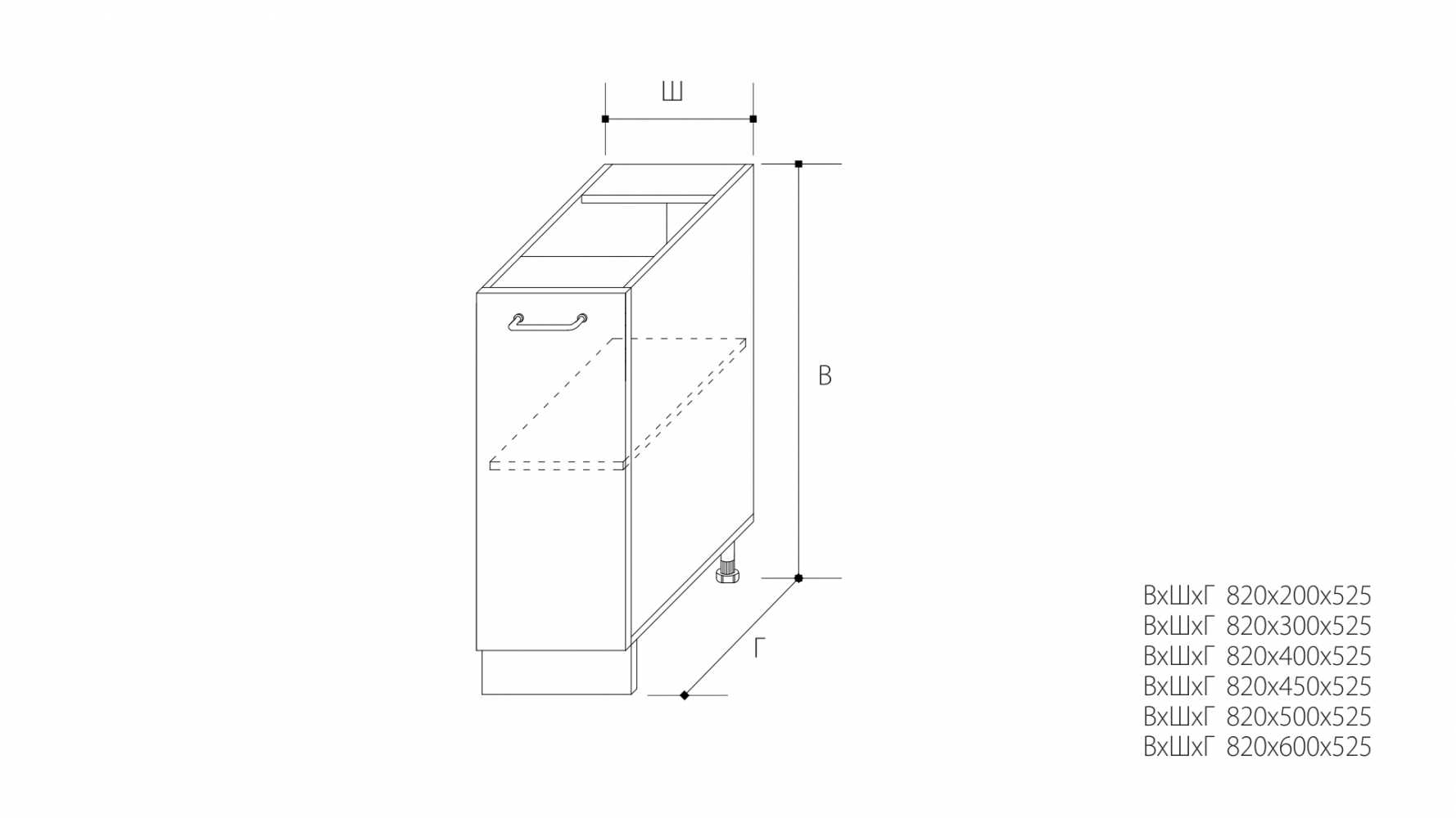 ВхШхГ: 820х600х525 мм.